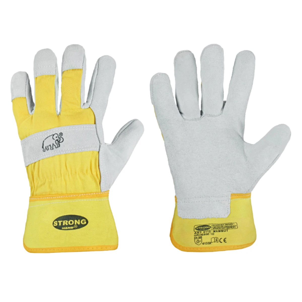 Govs zamšādas cimdi “MAMMUT”, ar dzeltenu tekstila virspusi; pastiprināta, gumijota manžete; plaukst...