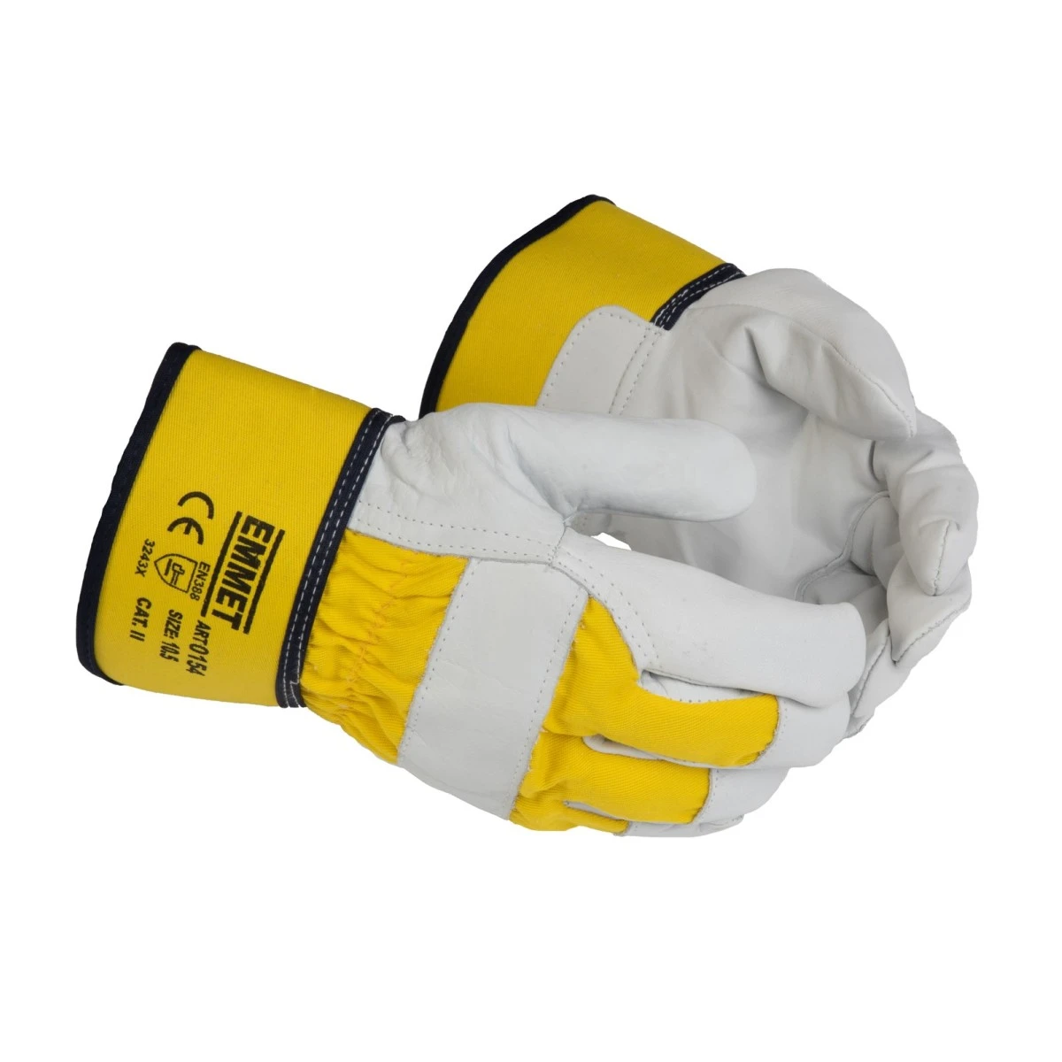 Mīkstas, gludas, izturīgas AB kvalitātes vēršādas darba cimdi ar dzeltena tekstila virspusi; ādas pi...